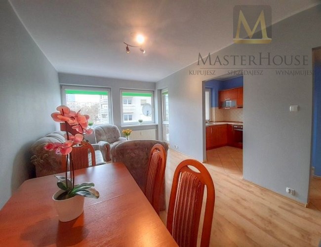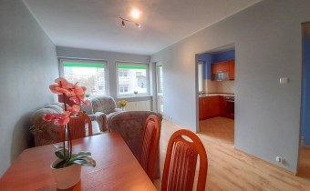 Mieszkanie o powierzchni ok. 50 m², położone w niskim bloku, z dużą loggią i świetnym rozkładem pomieszczeń: